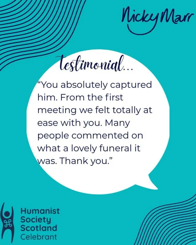 Being there to help families mark and celebrate life’s milestones is a privilege. I am registered to conduct legal weddings and civil partnerships in Scotland, and to help families say good goodbyes at funerals too.